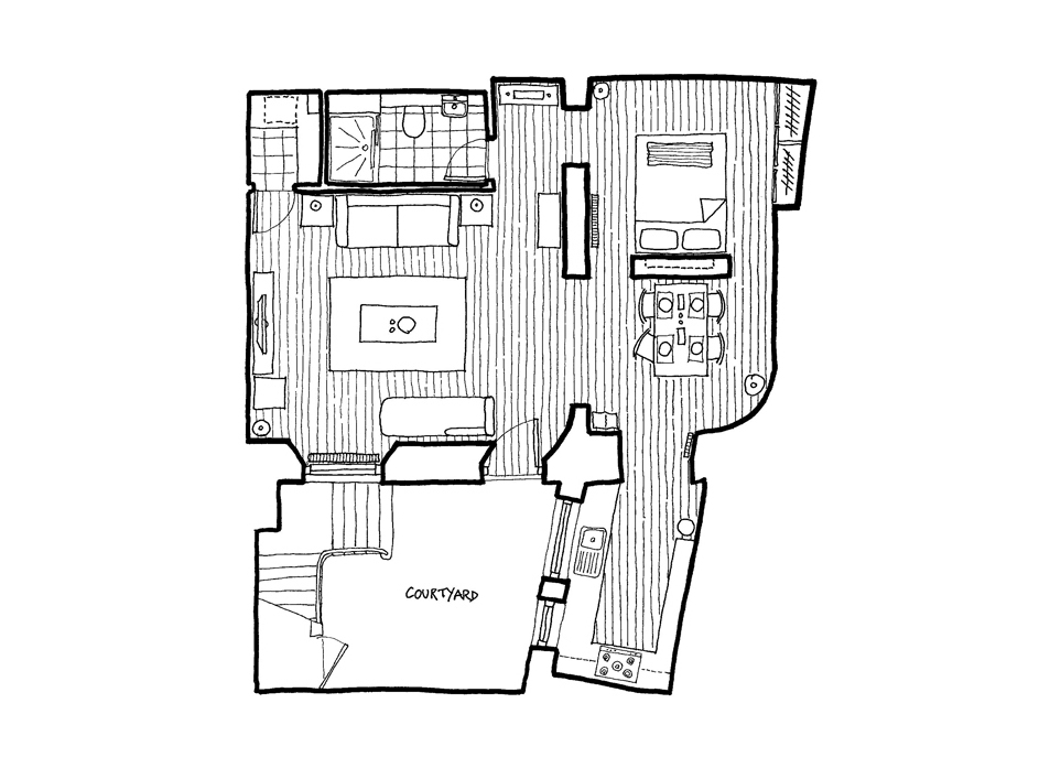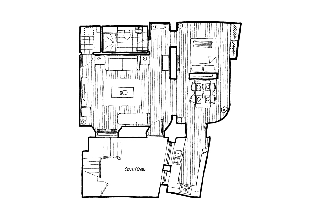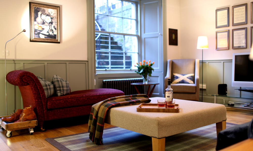 Despite being on this grandest of historic streets, you’ll enter an informal and convivial base for your Edinburgh stay. Spacious, thanks to its ingenious semi-open-plan layout; relaxed, thanks to considered and clearly demarcated living areas; and private, thanks to its own front door and pleasant courtyard, each reserved for your exclusive use.